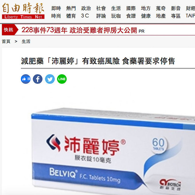 減肥藥「沛麗婷」增加癌症風險FDA要求下架