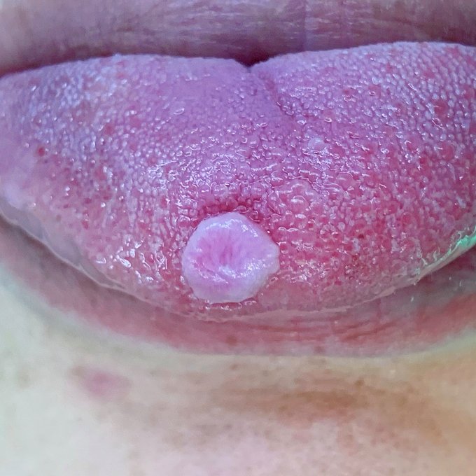 近期有病患因上呼吸道感染前來就診,魏醫師注意到患者舌頭上有不明腫塊,表面為疣狀突起,很有警覺性地轉診給邱醫師安排雷射手術切除,此病灶為疣狀增生,屬於口腔癌前病變的一種!!,幸好病理仍呈現良性,呼籲大家勇於戒除菸、酒及檳榔,提高警覺,當發現有以下症狀時及早就醫檢查:
